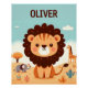 Libere seu aventureiro interior com este adorável pôster personalizado! Com um leão kawaii fofo relaxando na vibrante savana, este design certamente trará um sorriso ao seu rosto. Ao fundo, um elefante amigo pasta pacificamente e uma girafa graciosa estende seu longo pescoço, adicionando à atmosfera caprichosa.