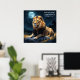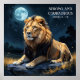 Poster Leão Majestoso à Noite com Estrelas e Lua Fé