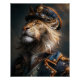 Uma ilustração digital de um leão masculino em uniforme militar steampunk.