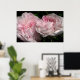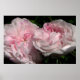 Leda é um antigo namorando Damask do início dos anos 1800. As pétalas são muitas e variam de cor, de flor a flor. Cor-de-rosa cremoso e frequentemente tingida com rosa mais escuro, ela também é chamada de "Autumn Damask" ou "Painted Damask". Este poster exibe duas flores rosadas e odorosas cor-de-rosa.