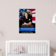 Cartaz de Funeral e Memorial da Bandeira Americana dos EUA & Linha Azul Fina em um design moderno da bandeira americana com linha azul fina. Personalize este cartaz de funeral policial com a foto do seu oficial de polícia, nome e número da insígnia, e datas. Citação: "Bem-aventurados os pacificadores: porque serão chamados filhos de Deus." Mateus 5:9. Esta Bandeira Americana com o símbolo da linha azul fina da aplicação da lei será um precioso souvenir para homenagear um oficial de polícia ou agente da lei caído. Perfeito para serviços funerários memoriais ou celebração da vida. DIREITOS AUTORAIS © 2020 Judy Burrows, Black Dog Art - Todos os Direitos Reservados. Memorial Policial Lembrança Funeral Cartaz