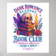 Design vibrante e colorido com uma pilha de livros com crânio em cima, penas, cera de gotejamento de vela acesa e um rosa. O texto colorido diz: "Dark romance readers book club. Prefiro meus contos de fadas escuros e picantes". Esse design está disponível em uma grande variedade de produtos.