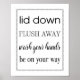 Crianças precisam de lembretes, sim, eles realmente precisam. Ajude-os com este branco e preto giro a lavar a sanita e lave o sinal de lembrete das suas mãos - perfeito para lhes dar o suave toque de que muitas vezes precisam.