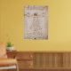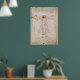 Este poster de arte tem a pintura "Homem Vitruviano" nele, de Leonardo da Vinci.