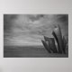Uma imagem altamente emotiva do memorial do Aterro do Dia D em junho de 1944 - Les Braves. Esta escultura magnífica é representada aqui em preto e branco clássico com Os Braves na extrema direita da imagem orientada para a paisagem com a areia, o oceano e o céu tempestuoso enchendo a moldura ao seu redor