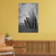 Uma imagem altamente emotiva do memorial do Aterro do Dia D em junho de 1944 - Les Braves. Esta escultura magnífica é representada aqui em preto e branco clássico com os Braves ligeiramente à direita da imagem orientada para o retrato com a areia, o oceano e o céu tempestuoso enchendo a armação ao seu redor