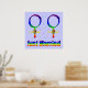 Dois símbolos do arco-íris para mulheres e Vênus anunciam seu novo status de "Recem casados". Dons de excelente para o casamento e a recepção depois.