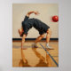 Uma pintura dinâmica a óleo de Art Deco que retrata um jogador de bola de cachorro fêmea em um arco retrógrado dramático e gracioso, sua forma geométrica estilizada definida pela iluminação macia do quiaroscuro enquanto ela evita uma bola vermelha em fluxo.