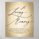 Sinal de casamento em grafia caligráfica preta elegante em folha de ouro falso 'Em memória amorosa, memorial para entes queridos que partiram'.