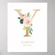 Letra floral elegante e feminina Y monograma poster com flores a aquarela pastel e verde com falso tipo de folha de ouro. Este monograma floral será um sotaque personalizado perfeito para berçários, quartos e outros espaços. Personalize adicionando nomes, datas ou outros detalhes.