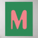 Letra Inicial Personalizada Rosa Claro | Poster de Fundo Verde Algas