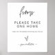 O nosso sinal de evento de lembrancinhas é perfeito para adicionar a uma moldura para exibir em uma mesa no seu casamento ou chá de panela, deixando seus convidados saberem que eles podem levar uma lembrancinha para casa ao sair. Este item faz parte da nossa suite de convite de casamento Gwen G400, visite nossa loja para ver a coleção de itens coordenados.