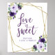 Poster Letreiro de Amor Floral Dourado Roxo É Doce