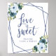Poster Letreiro de Amor Floral em Aquarela Azul Empoeirad
