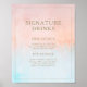 Este letreiro de bebidas com assinatura de aquarela de pôr do sol de verão é perfeito para o seu casamento tropical de boho na praia. Projetado com aquarela minimalista, coral laranja-peach e azul empoeirado, acompanhado de tipografia rústica simples em dourado arenoso. É certo que combina com as vibrações do seu casamento moderno boêmio na costa.