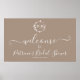 Um simples e chique banner de boas-vindas para chá de noiva com monograma de folhas em falso foil grullo. Fácil de personalizar com seus detalhes. Banner de boas-vindas para chá de noiva moderno boho editável, convite de casamento com foto e guirlandas, personalizável, fonte manuscrita caligráfica, simples, elegante.