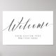 Elegante e Simples Letreiro de Caligrafia para Bem-vindo ao Casamento ou para qualquer evento, em belas letras floreadas e personalizadas. Um design formal elegante, porém simples, em preto e branco ou qualquer cor de fundo que você escolher. Basta clicar no link personalizar ainda mais, mostrado abaixo da área de personalização do texto à direita, e escolher a cor de fundo personalizada. Este modelo de cartaz de letreiro torna rápido e fácil criar adições impressionantes para a decoração do seu casamento. Os letreiros podem ser ampliados, há muitos tamanhos para escolher, bem como opções para molduras e passe-partout personalizados. Bem-vindo à sinalização personalizada.