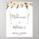 Procurando um letreiro de boas-vindas de chá de noiva moderno, simples mas elegante? Este design apresenta um arranjo floral cor-de-rosa claro no topo e dois copos de champanhe em ambos os lados do título. Este letreiro de boas-vindas de chá de noiva é uma maneira encantadora de receber os convidados para um chá de noiva.