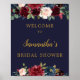Poster Letreiro de boas-vindas floral em burgundy navy to