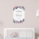 Dê as boas-vindas aos convidados à sua festa de casamento ou chá de bebê com o nosso cartaz Pink Meadow, apresentando delicadas flores roxas e rosadas e folhagens botânicas verdes, com "boas-vindas ao chá de casamento de [nome]" e a data do evento em uma mistura elegante de tipos de letras serif clássicos e caligrafia manuscrita.