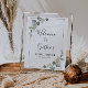 lindo quadro com moldura de folhagem verde de eucalipto em aquarela e texto em letra cursiva. O texto e as cores deste letreiro podem ser editados.