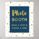Letreiro de cabine de fotos para chá de bebê, chá de lingerie ou casamento em azul escuro e branco com confetes dourados e letras em estilo manuscrito. Perfeito para um chá de bebê, casamento ou chá de lingerie.