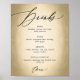 Script de Caligrafia Preta Elegante em Menu de Bebidas em Folha de Ouro Falso e Placa de Sinalização de Bar de Recepção de Casamento "Cheers".