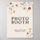 Os letreiros de cabine de fotos são caracterizados por um estilo boho com arte floral e cores neutras terrosas e bege.
