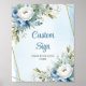 Poster Letreiro de Casamento em Aquarela Azul Dourado Bri