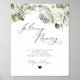 Cartaz/Sinal de Casamento Botânico de Flor Branca com Folhagem In Loving Memory.