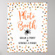 Letreiro de CABINE DE FOTO - PEGUE UM ADEREÇO & FAÇA UMA POSE apresenta um design de confete brilhante laranja, preto e dourado assustador para sua festa temática de Halloween.