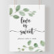 Este letreiro de eucalipto verde delícia doce amor é perfeito para um casamento simples ou chá de noiva. O design apresenta ramos e folhas de eucalipto botânico elegante desenhado à mão com aquarela.
