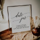 Este letreiro de jarra de data em caligrafia preta elegante é perfeito para um casamento simples. O design neutro apresenta um pôster minimalista decorado com tipografia romântica e caprichosa.