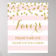 Letreiro de lembrancinhas para chá de bebê, chá de noiva ou casamento em padrão de listras rosa claro e branco com confetes dourados, por favor note que o dourado é apenas efeito fotográfico. Perfeito para um chá de bebê, casamento ou chá de noiva.