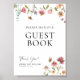 Letreiro de Livro de Visitas de Casamento com Aquarela de Flor Silvestre. Este letreiro é caracterizado por flores silvestres com fontes modernas e sofisticadas que moldam as tendências dos eventos festivos presentes e futuros.