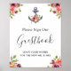 Cartaz de Letreiro de Livro de Visitas de Casamento Floral de Âncora Náutica