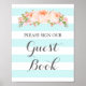 Poster Letreiro de Livro de Visitas Listras Flores Azuis