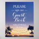 Letreiro de Luzes de Corda de Palma de Verão | Por Favor, Assine Nosso Livro de Visitantes Cartaz de Casamento.