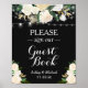 Letreiro de Casamento Assine nosso Livro de Visitas | Letreiro de Luzes de Corda Floral Branco Chic Cartaz Assine nosso Livro de Visitas!