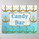 Letreiro de Noiva Cartaz Barra de Doces Oceânico Azul Aqua & Dourado Âncoras náuticas. Letreiro de noiva perfeito para um casamento com tema de praia.