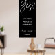 Sinal de festa de noivado simples caligráfico com letra 'Ela disse Sim!'. Diferentes opções de cor de fundo disponíveis: Preto, Azul-marinho, Borgonha, Esmeralda e Ferrugem. Nomes e data do evento são editáveis.