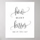 Quantos beijos há no jarro? Adicione um jogo divertido ao seu evento com este letreiro de festa personalizável. Ele apresenta uma letra preta e tipografia simples. Este letreiro de beijos é perfeito para chás de bebê, chás de noiva, chás de casamento e outros eventos.