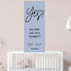 Letreiro simples de festa de noivado com letra 'Ela disse Sim!' em caligrafia. Diferentes opções de cor de fundo disponíveis: Bege, Verde menta, Rosa po, Azul po. Nomes e data do evento são editáveis.