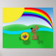 Beautiful day...sunshine and a rainbow over the rolling hills and river with an adorable puppy waiting to play ball. This design is perfect for a children's room décor, party invitations and more.