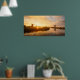 Poster Levantamento do sol sobre moinhos de vento e um ri
