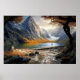 Get ready to be transported to a natural paradise where earth, water, and sky merge in perfect harmony! This majestic valley is dominated by imposing mountains, their faces covered in snow and rugged rocks, while a crystal-clear lake reflects the golden hues of autumn. A winding river snakes through the shore, surrounded by stones and rustic vegetation, and a solitary figure observes the horizon, symbolizing human connection with nature. Vibrant colors and rich textures create a mystical and inspiring atmosphere – perfect for those who want to bring the essence of freedom and wild beauty into their home!