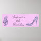 Cartaz personalizado, elegante e personalizado da 18ª festa de comemoração da festa de aniversário. Lindas faixas de festa de aniversário roxa / lilás / lavanda, dezoito / dezoito anos / 18 anos de idade com imagens impressas glamourosas / brilhantes de diamantes, sequências, joias brilham alto salto para o calçado e notas musicais brilhantes / notas musicais com brilho em um fundo lilático clássico. Banners modernos, bonitos, giros, com cores modernas e modernas. Esses banners legal, ranhosos, na moda, sofisticados e bonito são perfeitamente personalizáveis para atender às suas necessidades. Banners perfeitos para festas de dança jante. NOTA: todos os produtos do Zazzle têm imagens impressas em formato plano. Se precisar de assistência para personalizar seu produto, entre em contato comigo através da minha loja e eu ficarei feliz em ajudar.