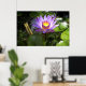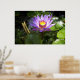 Uma bela imagem de uma lilly roxa e amarela numa lagoa.