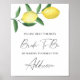 Cartão de chá de panela de casamento com tema de limão cítrico em aquarela com ilustração em aquarela de limões em um galho de árvore. Escrita à mão caligráfica elegante, perfeita para casamentos na primavera, verão ou outono. Itens correspondentes disponíveis.