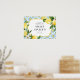 Bem-vindos convidados para o seu evento com este doce e personalizável sinal de boas-vindas a dezesseis pessoas. Apresenta ilustrações de cor d'água de limões, flores de limão e padrão de azulejo mediterrânico. Personalize adicionando nomes, data, hora e outros detalhes. Este doce limão e dezesseis sinais de boas-vindas é perfeito para casamentos de verão e aniversários temáticos mediterrânicos.